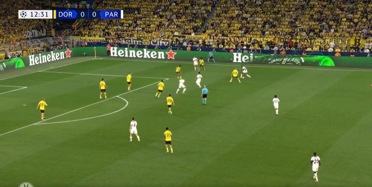 BVB hat in der CL Saison meist in einem Mittelfeldpressing agiert, lediglich situativ ist man in ein Angriffspressing gegangen. Die richtige Balance zu finden wird – wie schon gegen Paris – extrem wichtig. ->