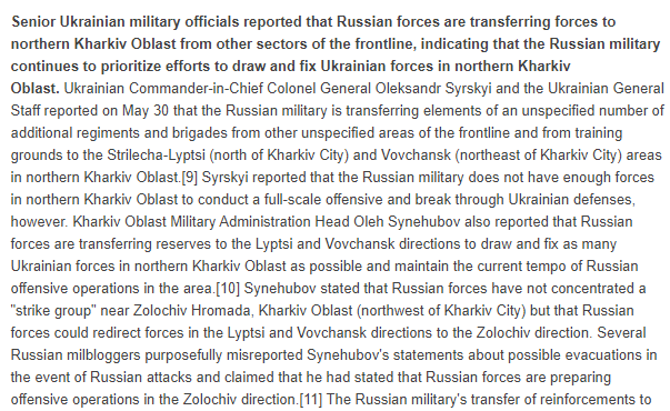2/ The Russian military's transfer of reinforcements to Kharkiv indicates that the Russian military likely continues to prioritize efforts to draw and fix Ukrainian forces from critical sectors of the frontline in eastern Ukraine and establish a "buffer zone" in northern Kharkiv.