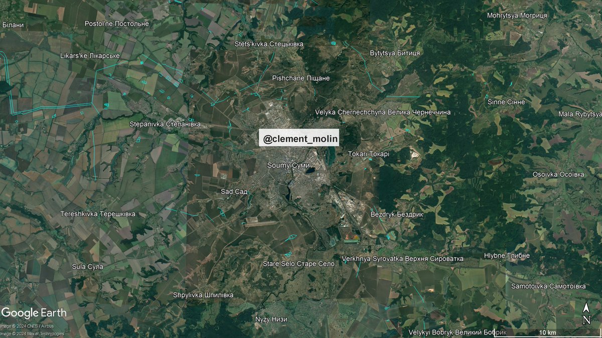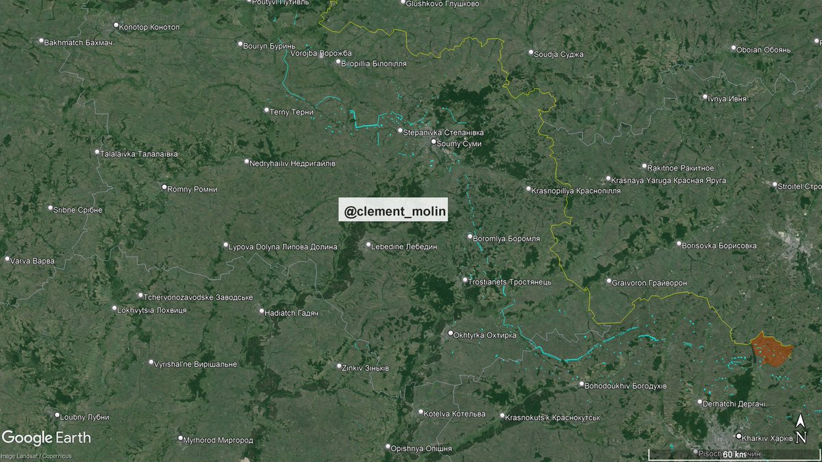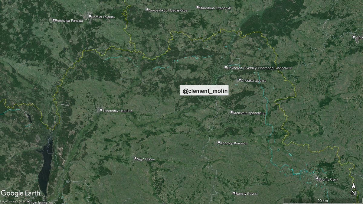 Here is the North-Eastern border with a zoom in for Sumy city and Tchernihiv oblast.