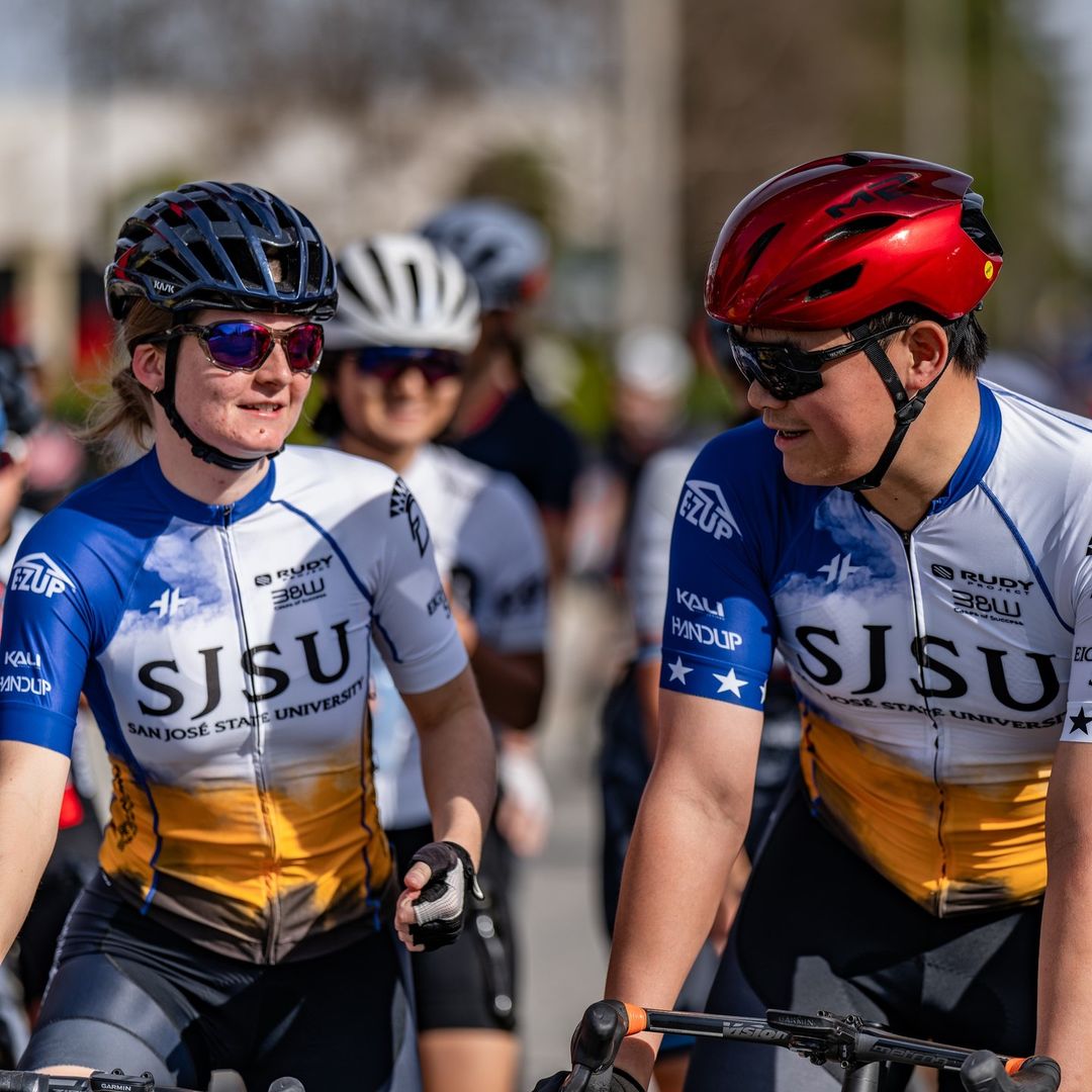 Eva (Henry) Lin used to race on the men's squad for San Jose State University. He switched to the women's squad in 2022 and has had MUCH more success! He's pictured here racing in the women's field.