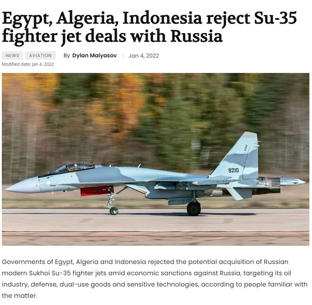 2019 unterzeichnet Ägypten den Kauf von 24 Su-35 Kampfflugzeugen. Sie werden dort nie landen. Der US Countering America’s Adversaries Through Sanctions Act (CAATSA)war den Ägyptern dann doch zu heiß und sie stornierten 2022 die Bestellung. 8/21