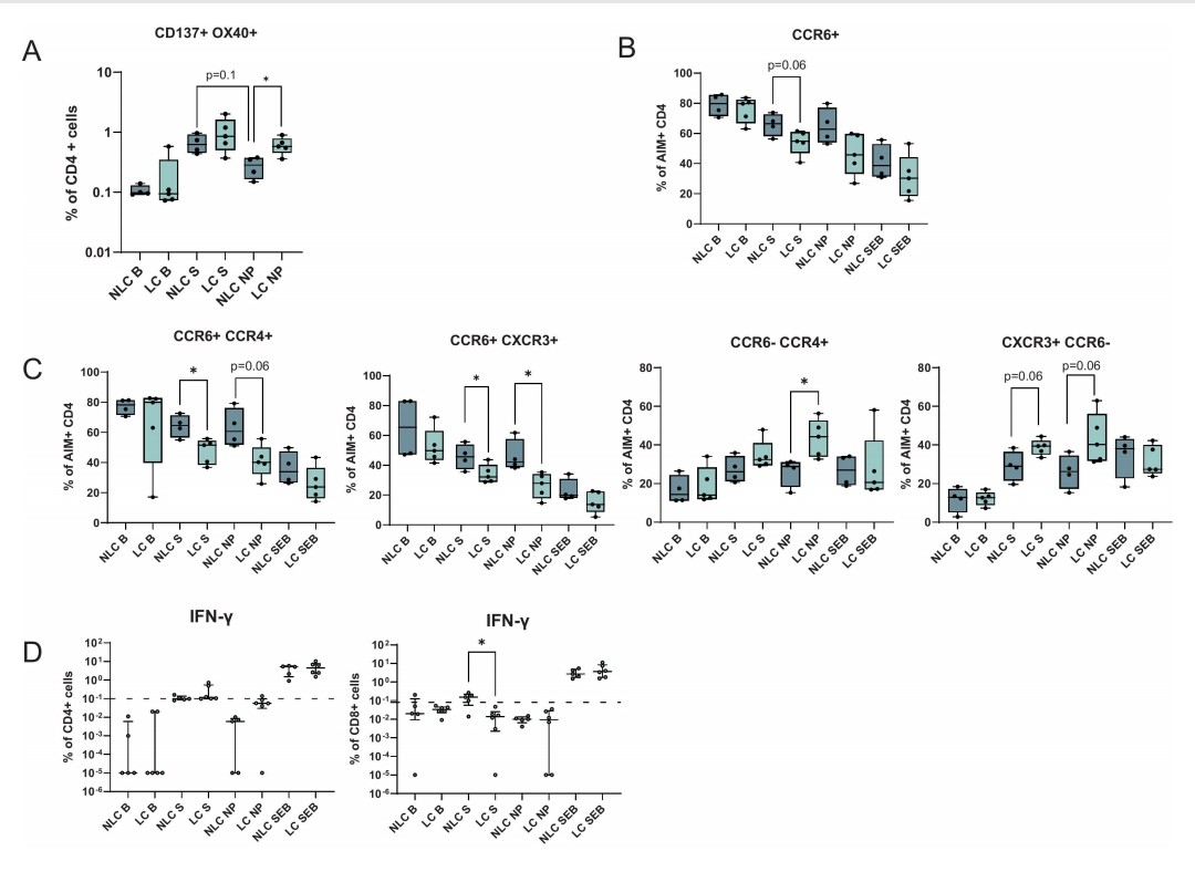 3) They also exhibited higher Th1-like CXCR3+CCR6- and Th2-like CCR4+CCR6- SARS-CoV-2-specific CD4+ T cells. Additionally, LC patients demonstrated decreased IFN-ฮณ+ CD8+ T cells upon SARS-CoV-2 spike stimulation, suggesting impaired viral control.