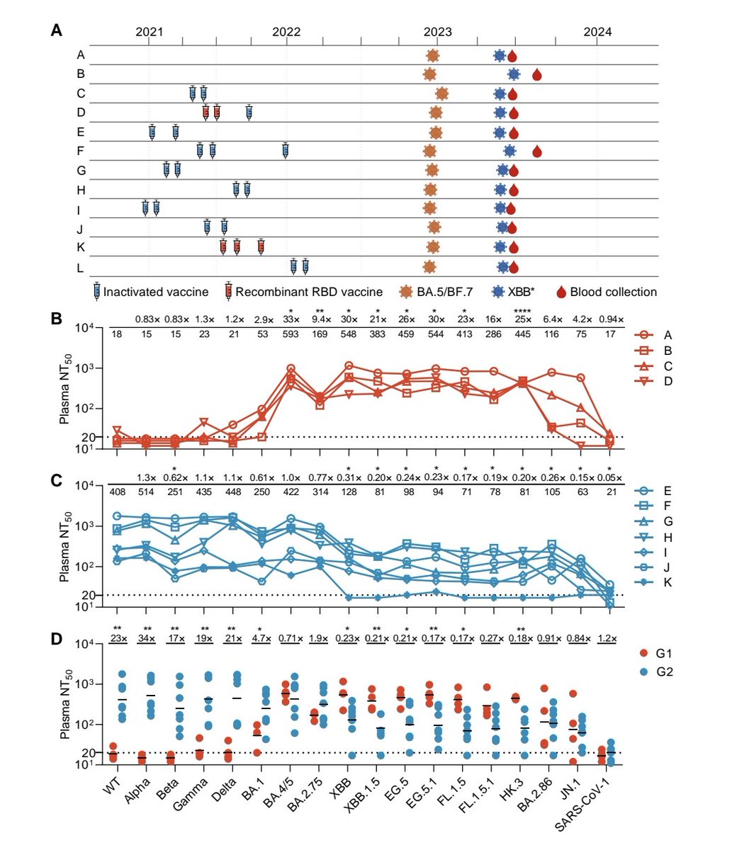 2) This study analyzed antibody responses to sequential Omicron infections in vaccinated/unvaccinated individuals. While some vaccinees showed no immune imprinting, imprinting persisted after reinfections in others. Imprinting affected RBD antibodies more than NTD.
