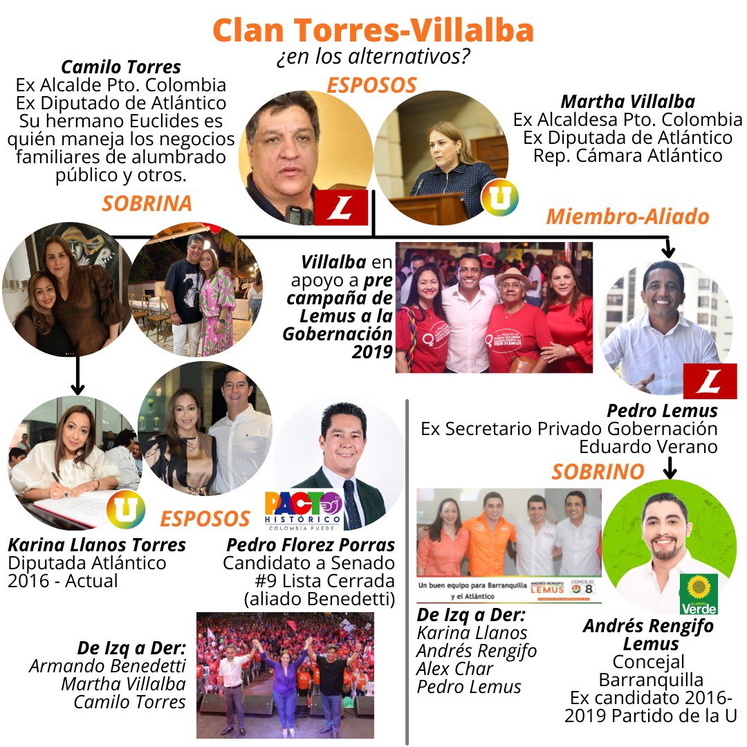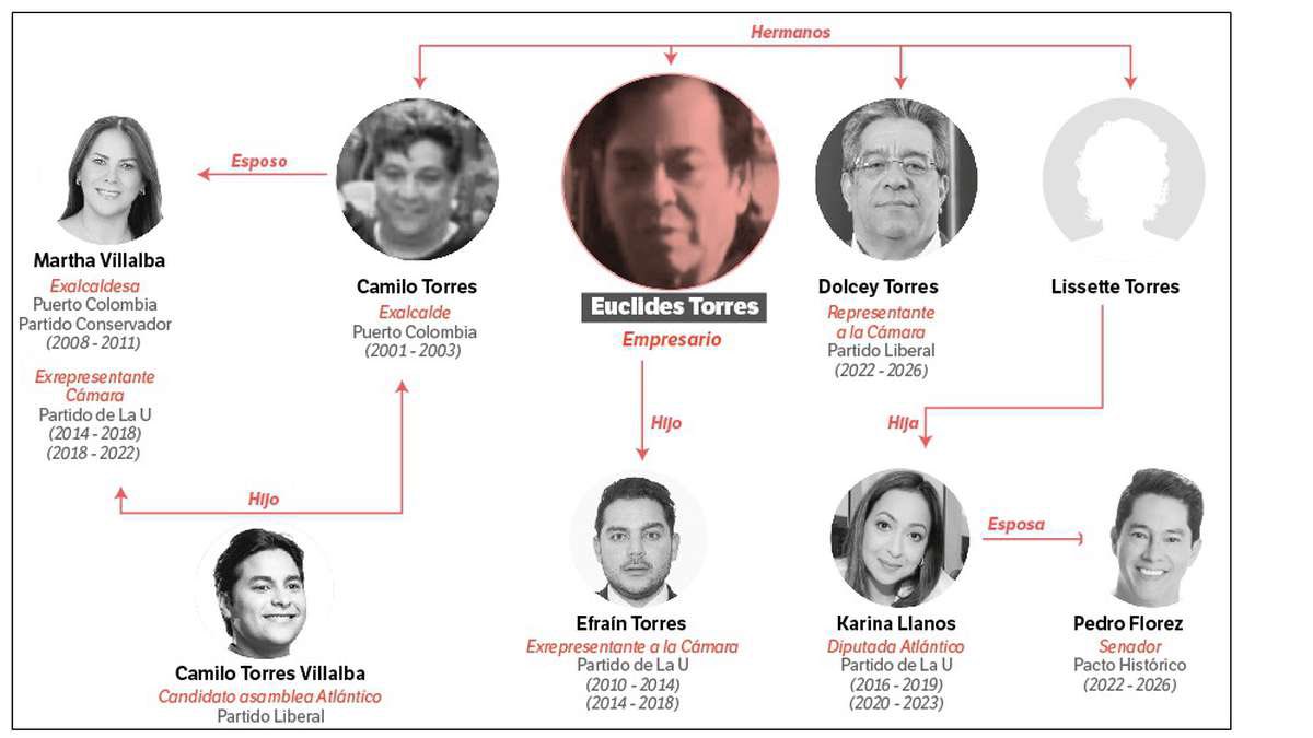 También financiaron la campañas de Eduardo Verano y hoy se pelean con los Char para ver quién mueve mas hilos en la Gobernación, donde tienen a Karina Llanos esposa del Senador Pedro Flores del Pacto Histórico, sobrina de Euclides Torres, como la primera gestora, una corbata.