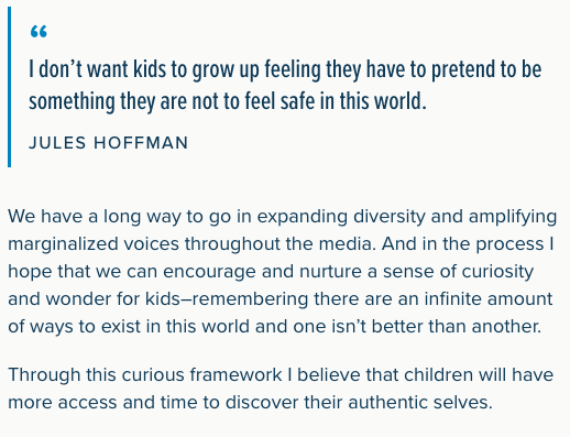 8/ Jules believes that her “representation” — aka being in Ms. Rachel’s “Songs for Littles” — helps to “encourage and nurture a sense of curiosity” in kids, and teaches them that there are “infinite” ways to exist in the world, and “one isn’t better than another.”