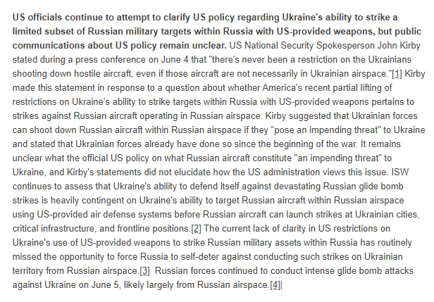 2/ ISW still assesses that Ukraine's ability to defend itself against devastating Russian glide bomb strikes is heavily contingent on the ability to target Russian aircraft within Russian airspace using US-provided air defense systems before Russian aircraft launch their weapons.