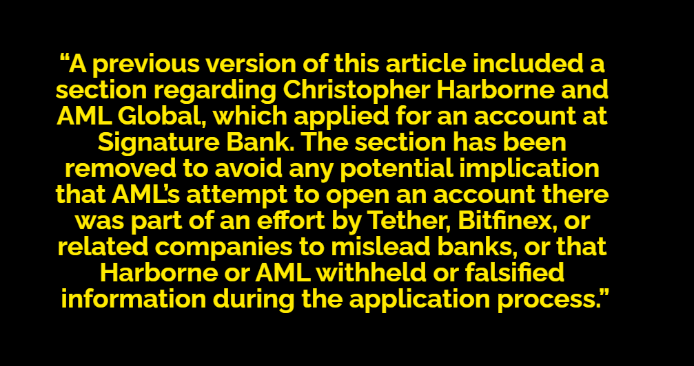 The original claims of the article seem to have largely revolved around Harborne, & Stephen Moore, who had reservations about Bitfinex’s banking arrangements.