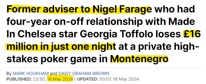 Two weeks ago, rumour had it that the aristocratic banker - an ex-boyfriend of I'm A Celebrity winner Georgia Toffolo - was believed to have lost a staggering £16 MILLION in a private high-stakes poker game in Montenegro. 🤑
