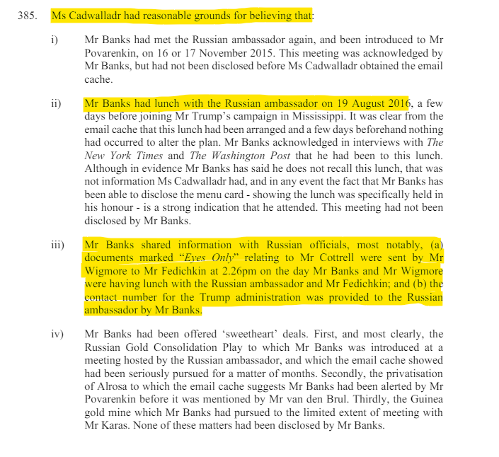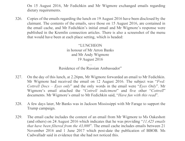 The contents were not reported in the UK media after a series of threatening messages from Banks’ lawyers & his spokesman Andy Wigmore, who said he would “come after” anyone who downloaded the data. Wigmore also accused Twitter of breaching European Union data-protection rules.