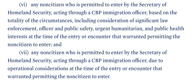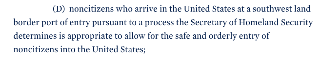 And this loophole--"noncitizens who arrive in the United States at a southwest land border port of entry pursuant to a process the Secretary of Homeland Security determines is appropriate to allow for the safe and orderly entry of noncitizens into the United States."