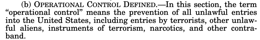 Congress has repeatedly told the Executive to secure the border. In the Secure Fence Act, it defined operational control as the prevention of ALL unlawful entries to the United States. Not just some. Certainly not thousands each day.