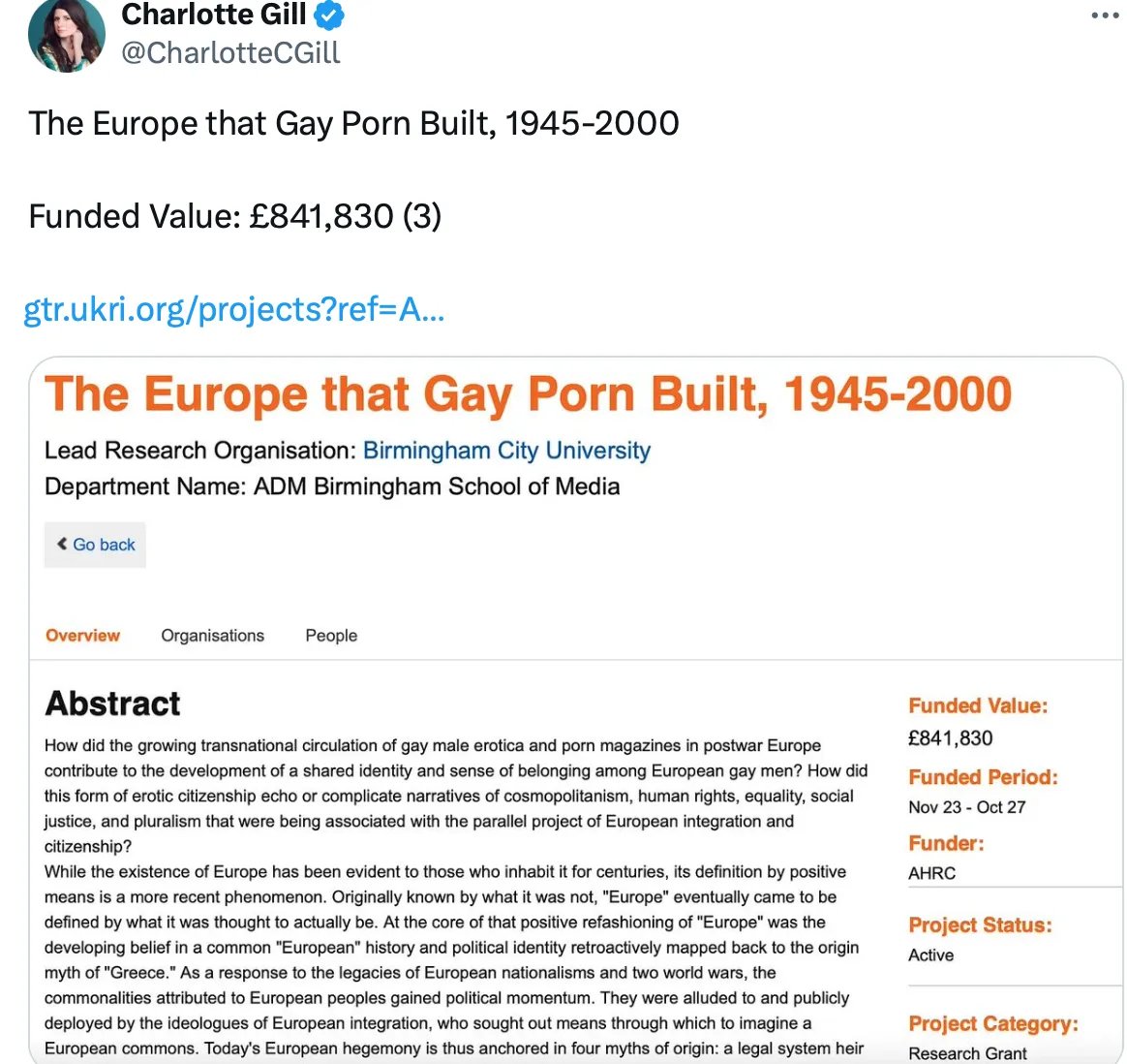 Both doctoral researchers are funded by the Arts and Humanities Research Council (taxpayer).