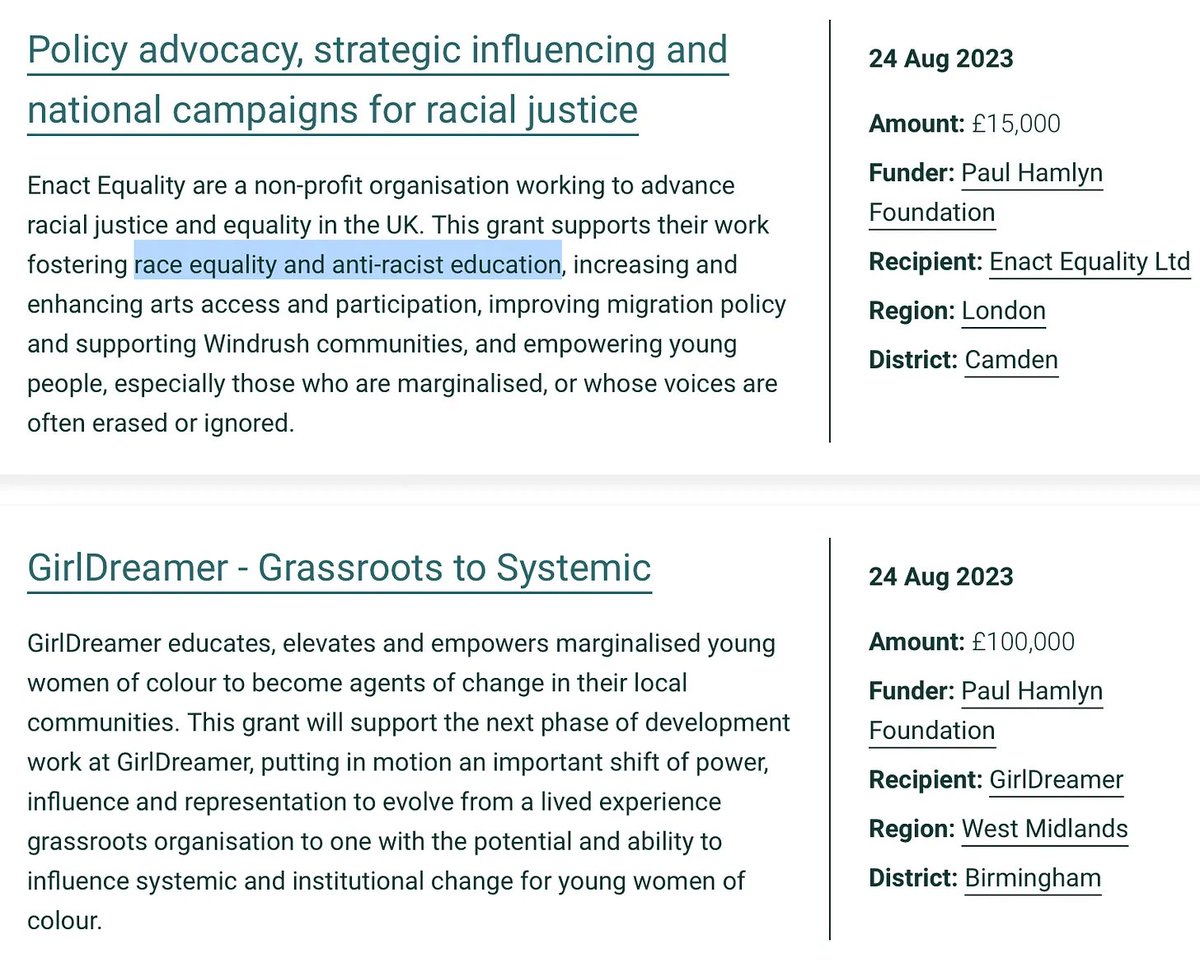 PHF has given hundreds of thousands to organisations whose raison d’être is magnifying racial differences and splitting society up by ethnicity. This is always presented as caring/social justice, but it's counterproductive to social cohesion and diversity.