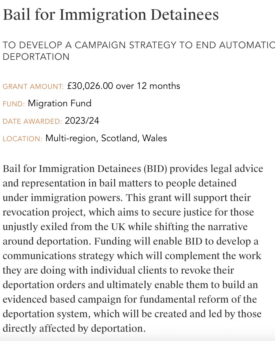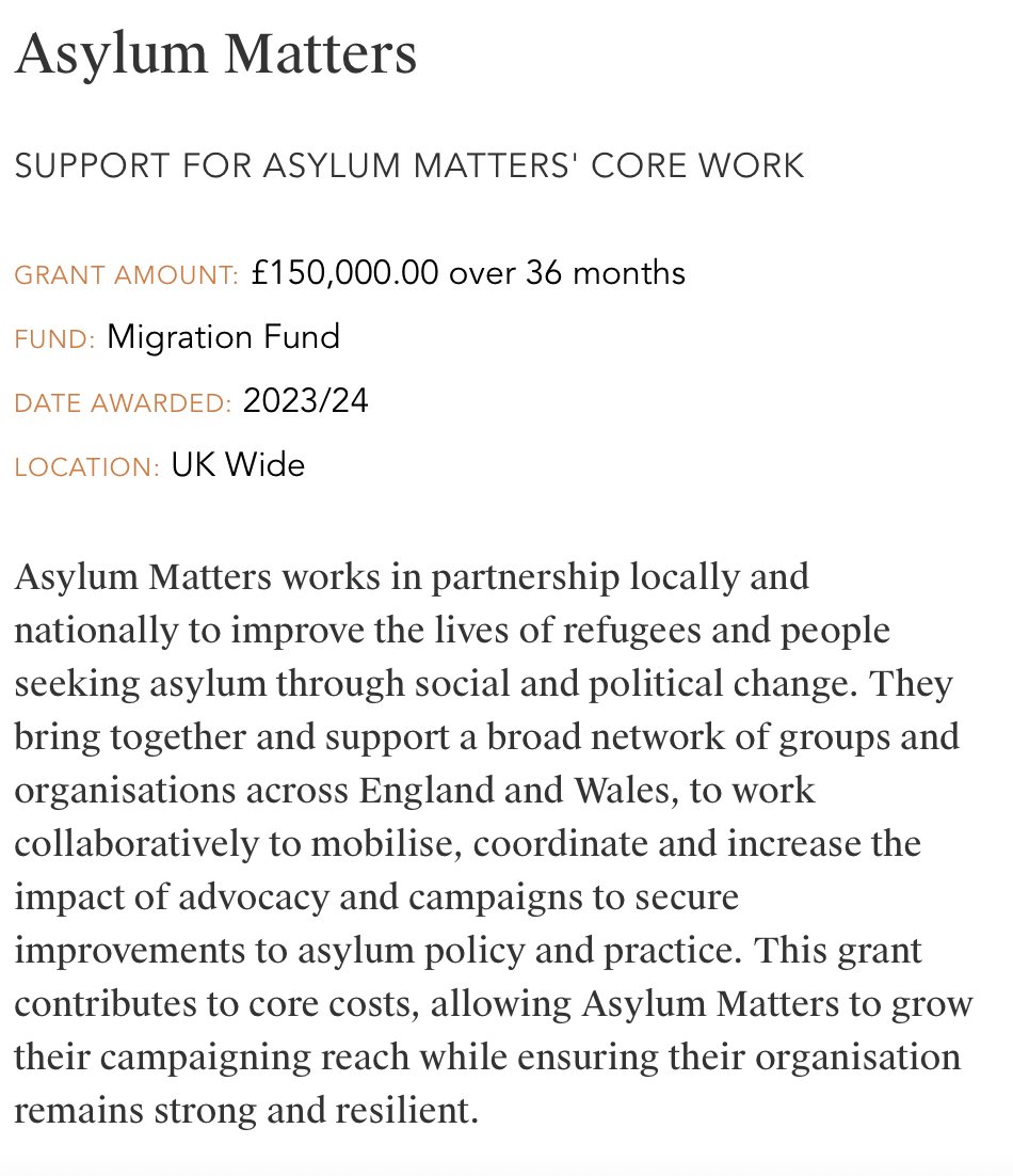 I'm concerned by the number of British charities/ otherwise funded by The Paul Hamlyn Foundation. PHF is a foundation that supports open borders. I have found two examples of it funding charities that advised the Government. One is HOPE not hate (advised the Home Office).