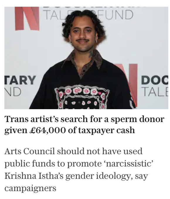 1) Trans artist’s search for a sperm donor given £64,000 of taxpayer cash