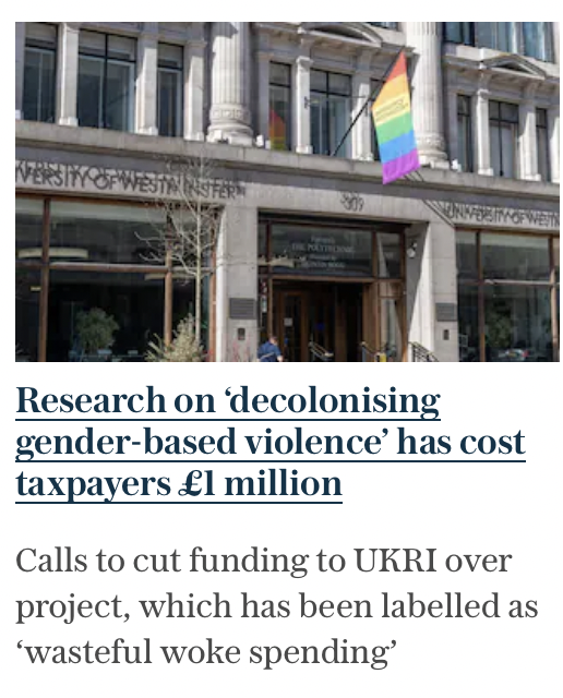 2) Research on ‘decolonising gender-based violence’ has cost taxpayers £1 million