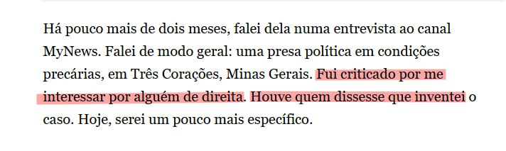 Pode parecer pouco vindo de um jornalista esquerdista histórico — mas o texto é, na prática, um chamado à ação. Talvez um recado direto ao judiciário, mas há um ponto aqui interessante a ser observado.