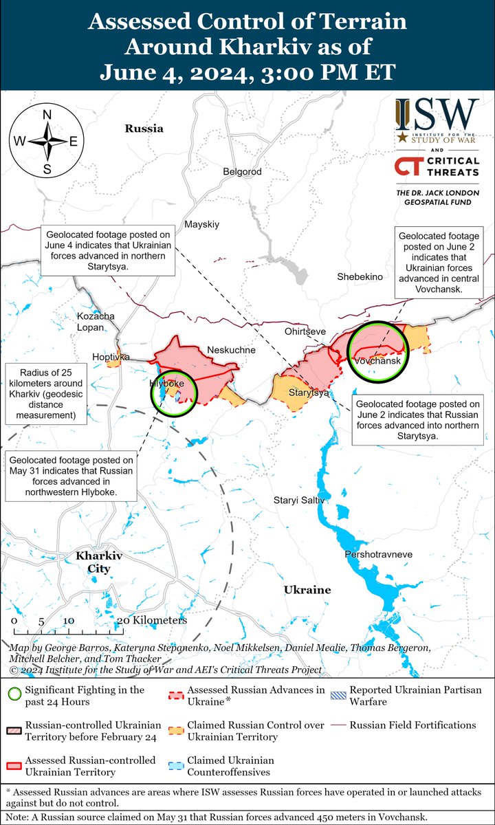 2/ Kharkiv Oblast occupation administration head Vitaly Ganchev acknowledged on June 4 that the tempo of Russian offensive operations has slowed in northern Kharkiv Oblast, consistent with ISW's recent observations on Russian forces' rate of advance in this direction.