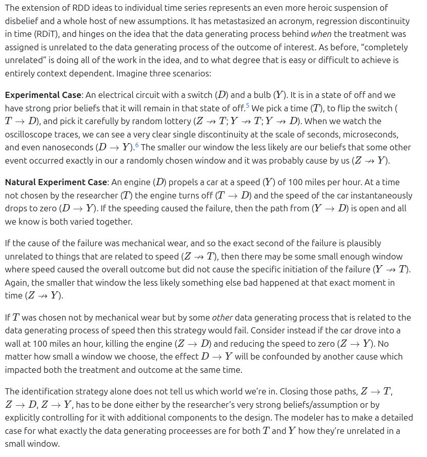 No matter how small you crank that window, it doesn't disentangle two incredibly complicated and highly related DGPs for you. Or rather it doesn't do it automatically. The modeler has to then spend pages grinding all the paths, applying strong priors to close them. It's not free.