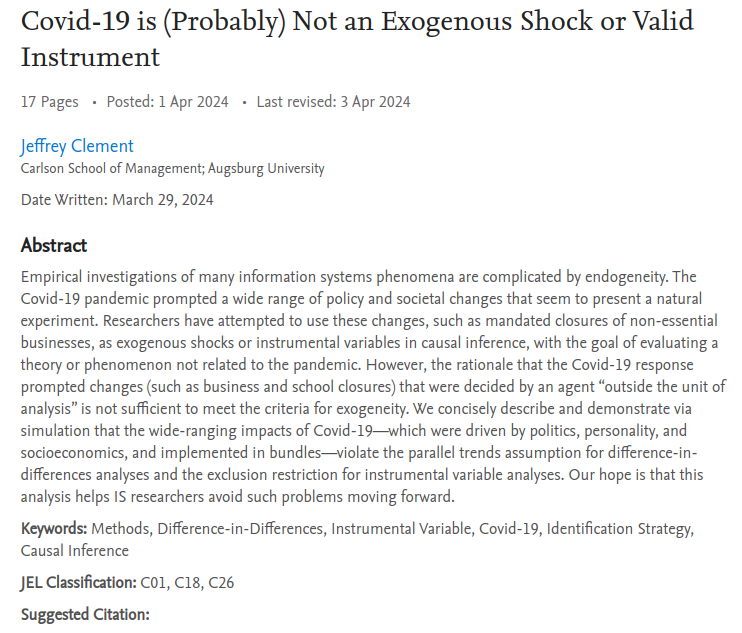 I need to go back and cite this in my discussion of how policies aren't randomly timed with respect to every other co-variate in the middle of a global disaster. papers.ssrn.com/sol3/papers.cf…