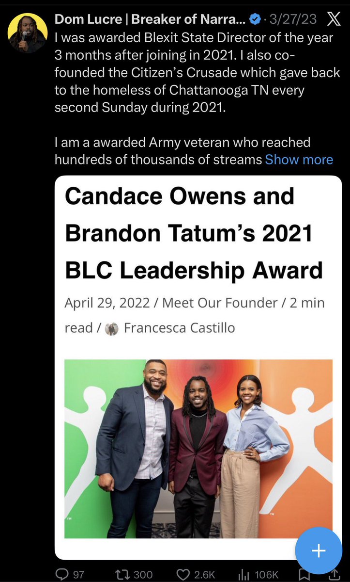 According to his post with Tatum and Candace (3/27/23) BLEXIT had not parted ways at the time of him sharing CSAM, nor is there an announcement of them severing the relationship.