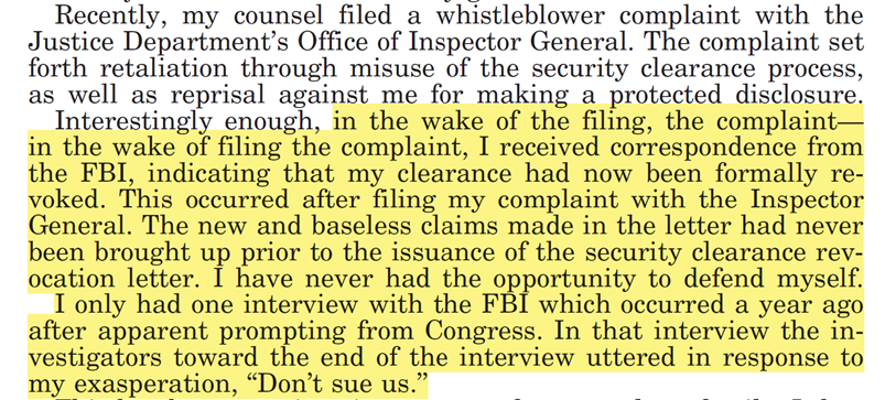 The letter included a number of allegations about Marcus Allen the FBI did not even ask about in his clearance suspension interview. Some were a simple misunderstanding, and some were outright false and made up out of whole cloth, as he made clear in the May 18 hearing.
