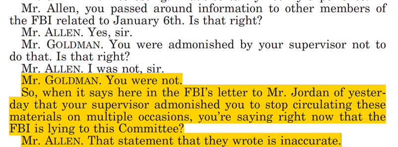 The staff report made clear to our client Marcus Allen that Judiciary Democrats had no reservations about attacking whistleblowers and selectively leaking transcript portions without him having an opportunity to respond, so he informed Judiciary Republicans he would only sit for an interview if Democrat staff were not present. The interview happened May 8, 2023.