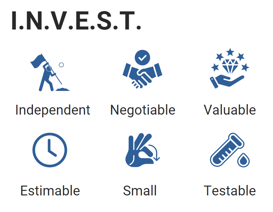 INVEST is an acronym representing the essential qualities of well-written User Stories: