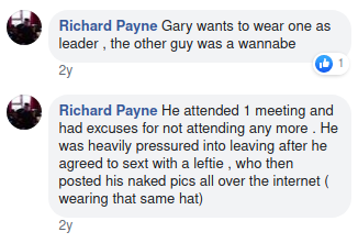 Their leader is Gary Raikes, ex-BNP official and brief dabbler in Britain First, before he went on to decide that the fascist revolution would be achieved by cosplaying in his bedroom. Playing dress up on the left, a profile shot of him during his BNP days on the right.