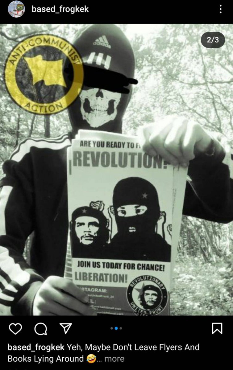 What particularly amused us was the "action" in which Skyler appeared to hold Communist flyers that he claimed to have stolen. The "Revolutionary United Front" labelled on the leaflets is in fact another front group that Skyler created.