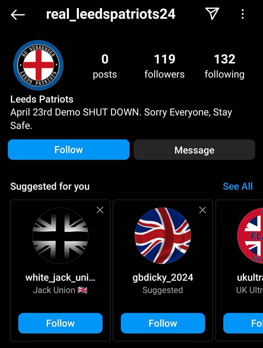 While investigations were going on into Skyler, we were able to link Skyler's previous honeypots to the current Leeds Patriots group. After apparent pressure from police and local antifascists, Leeds Patriots cancelled the protest and has ceased all current activities