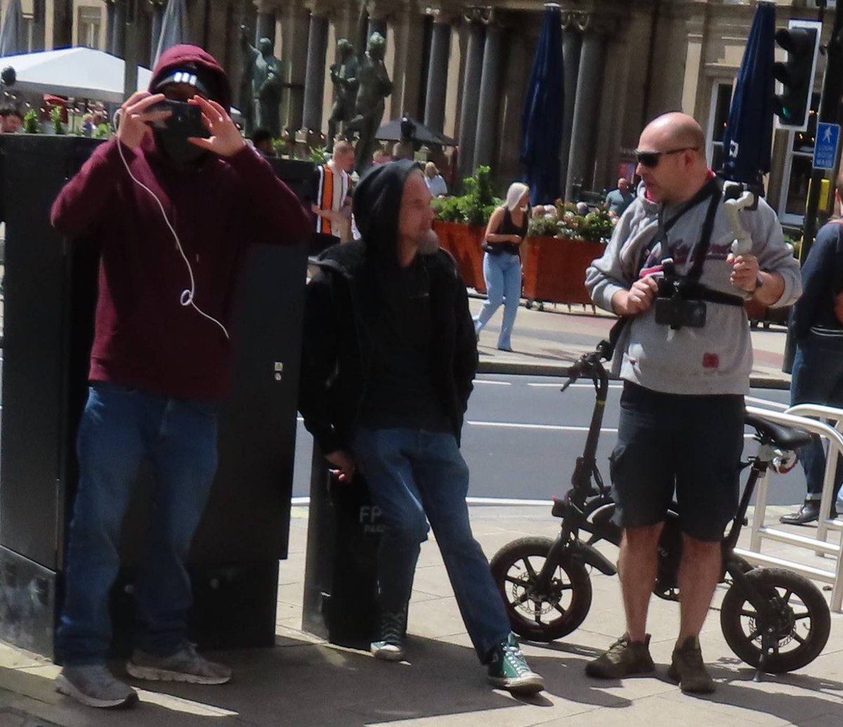 Now using the profile 'Based Audits', Skyler (holding up phone) has joined up with Marti Blagborough and 'Street Hawk' in auditing, including filming Palestine protests.