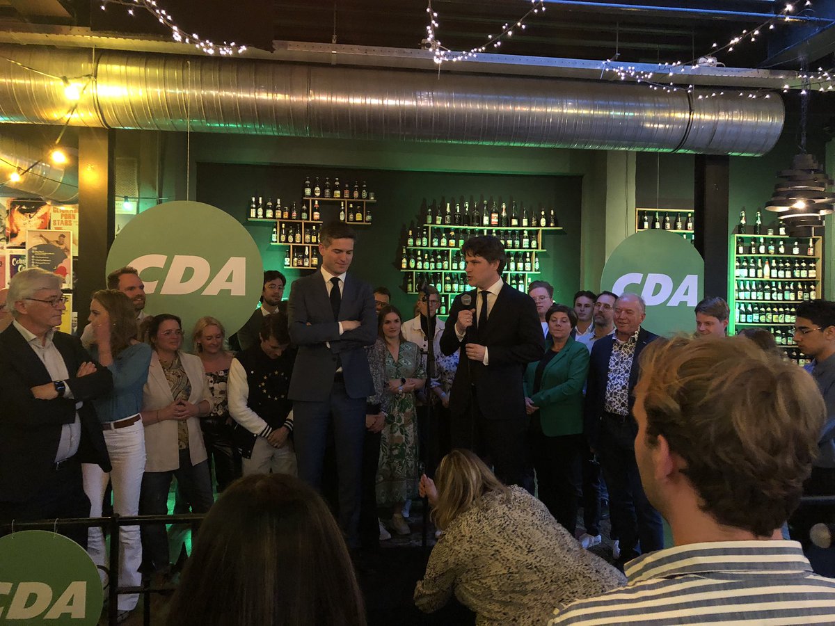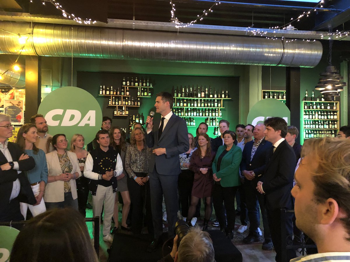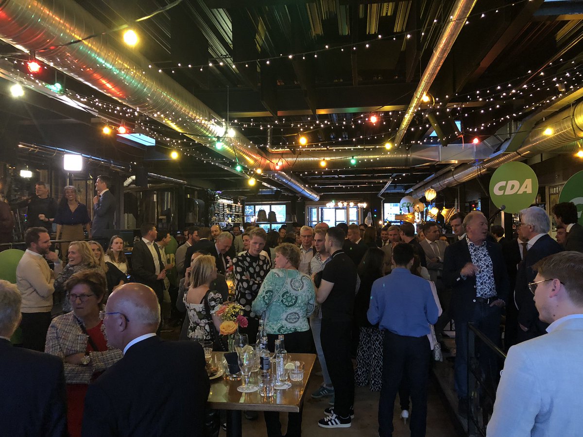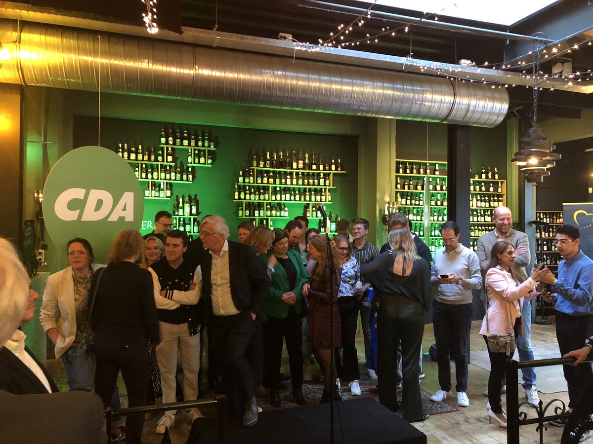 We kijken naar de exitpoll. Gejuich in de zaal voor drie zetels voor het CDA.