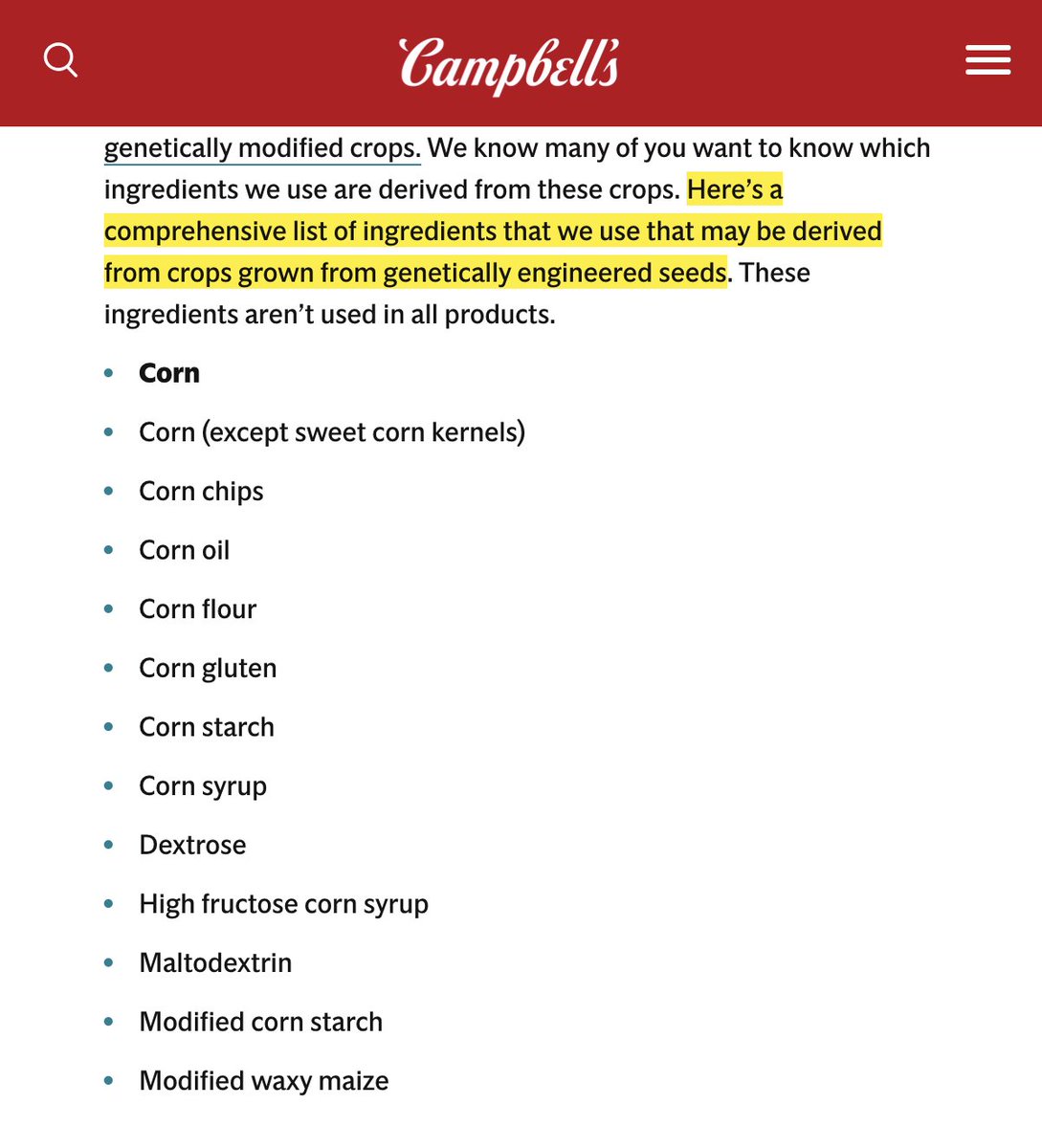 But another page on their website—one that predates this week's controversy—says that they use over two dozen different GMO or GMO-derived ingredients.