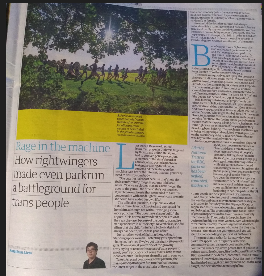 Once again, the right can only make capital out of females wanting female categories at @parkrun when the liberal/left reveal themselves as totally unreconstructed sexists. 1/