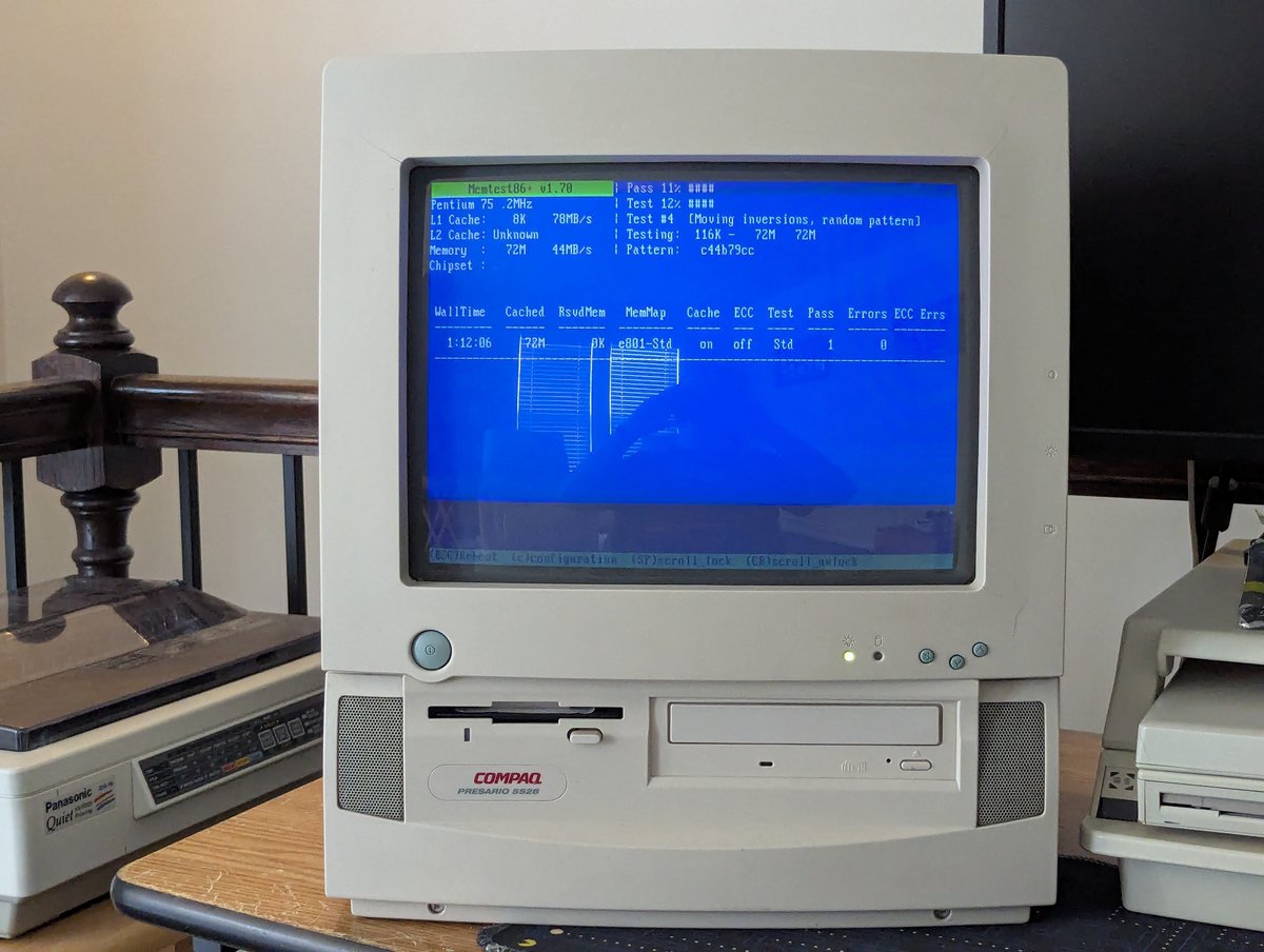 The first thing I did was run MemTest86+ which passed. From there, I got out my "good camera" because, as we can quickly see, we're going to need to be able to adjust shutter speed here 😂