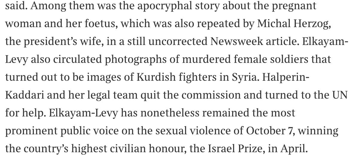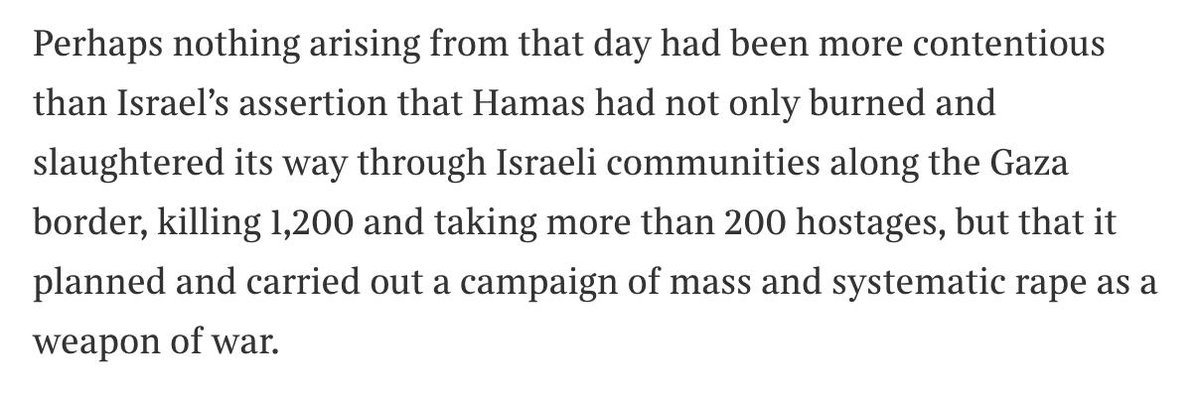 The piece ignores other evidence of sexual violence, including video of the aftermath & victims’ contorted bodies, instead focusing on isolated early incidents of false info shared on social media, even when they were promptly retracted. It ignores how common this is during wars.