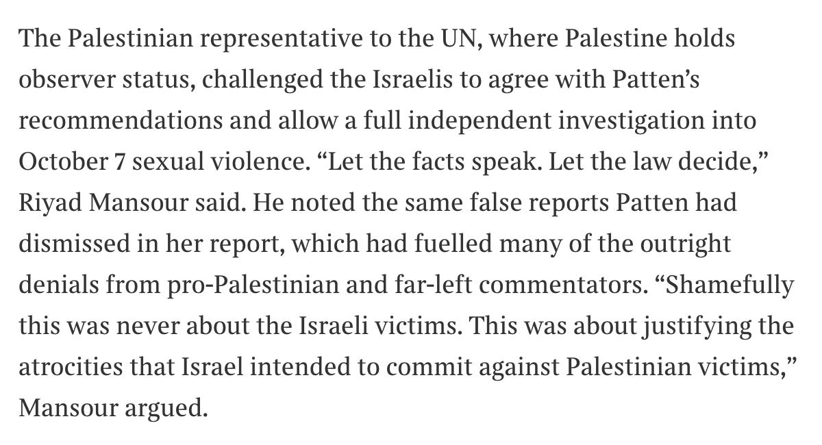 The authors say “police have not interviewed a single survivor” of rape on Oct 7. As the UN report made clear, every rape victim was murdered or abducted to Gaza, where they may still be enduring sexual violence. This is only reluctantly acknowledged toward the end of the piece.