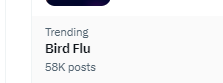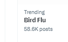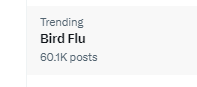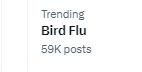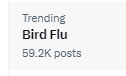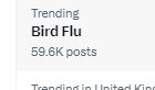14. Will X let bird flu trend to 60k again? Currently 59.6k #birdflubingo #xensorship #birdflu