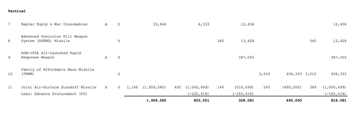 The administration's 2026 defense budget request includes procurement funding for the AIM-260A missile marking the first time the Joint Advanced Tactical Missile procurement funding has been publicly reported. The PB26 budget includes $368 Million procurement funding for #JATM.