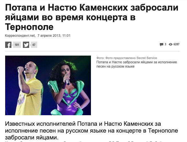 Famous pop artists were pelted with eggs during a concert in Ternopil.