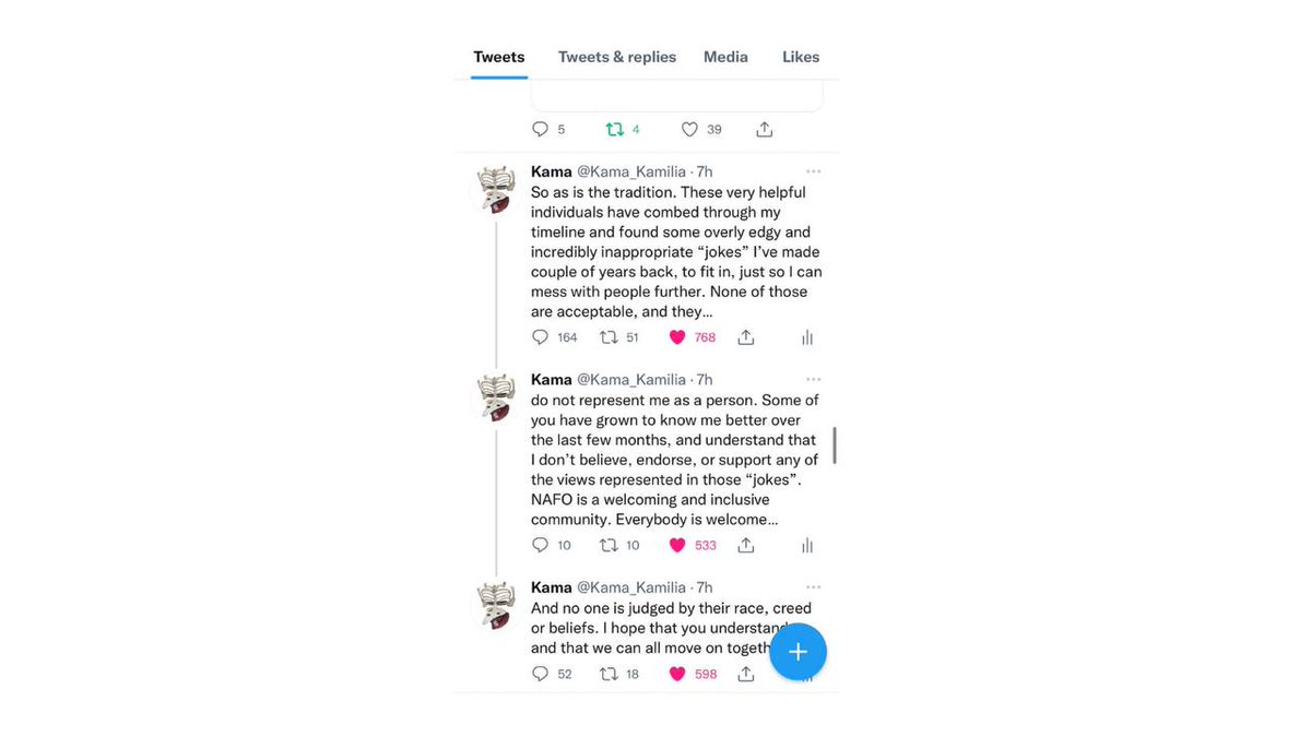An interesting side note, the founding NAFO fella @Kama_Kamilia, a gamer originating from Poland, also said he was being “overly edgy” when it was found out that he is a raging alt-right racist and antisemite. This was his “apology” along with a measly € 50 donation to the Auschwitz-Birkenau Memorial and Museum. You can head over to @mossrobeson__ to see for yourselves. For the record, Kama made over 2,880 of those “edgy” posts to “fit in”.