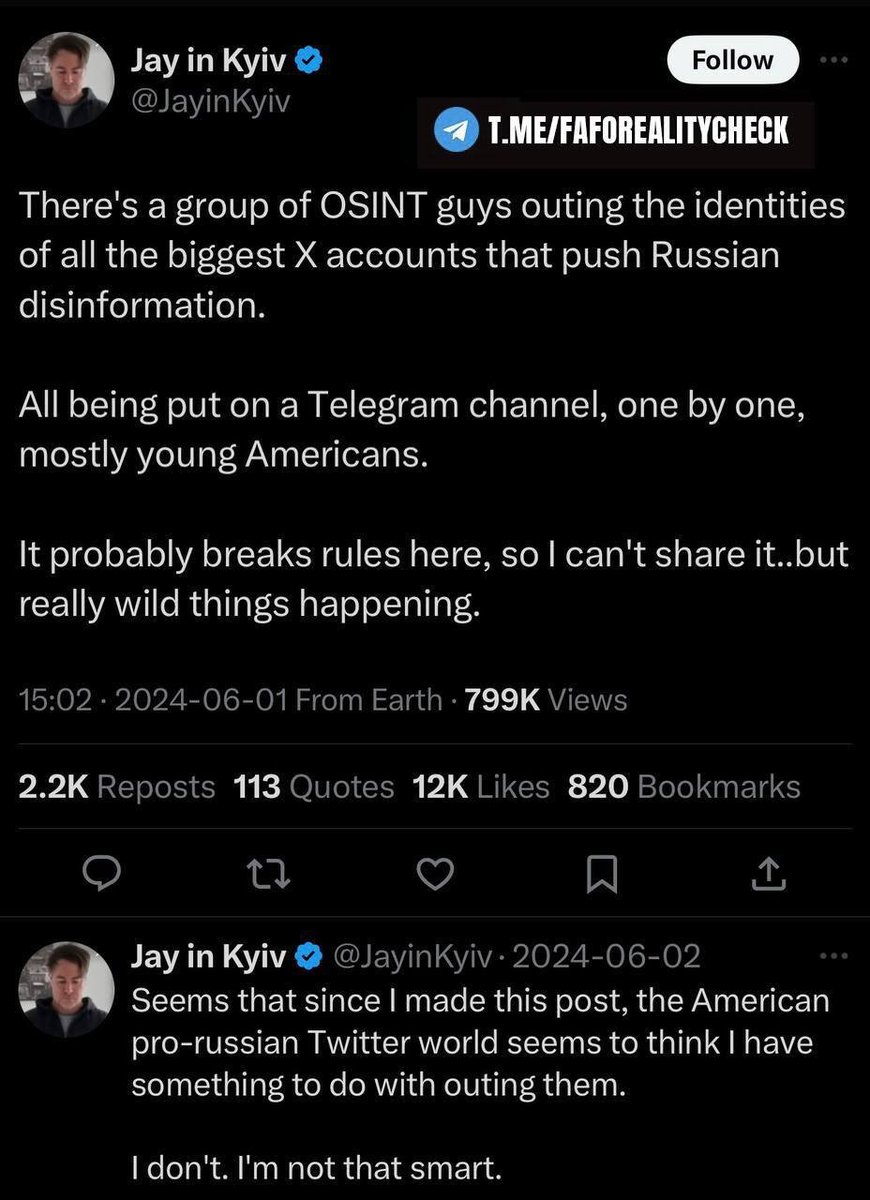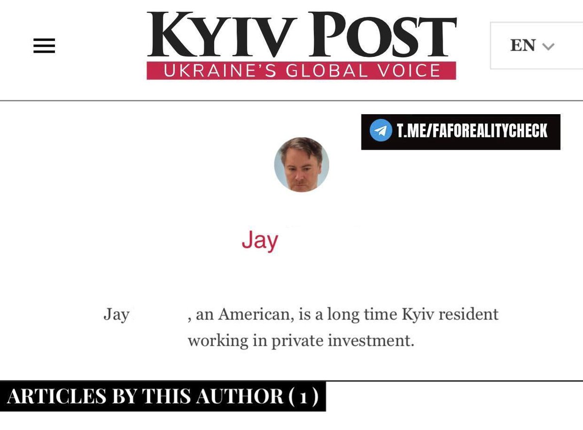 Jay in Kyiv @jayinkyiv on X (as of June 2022) is “an American and long time Kyiv resident who works in private investment” at least according to his “author” bio on the Kyiv Post’s website (he co-wrote ONE article to date). In present day reality, Jay larps as a “political commentator” and spends most of his days in Kiev rage posting BS on X in ALL CAPS and blocking everyone who calls him out on said BS especially if they have receipts. 1/11