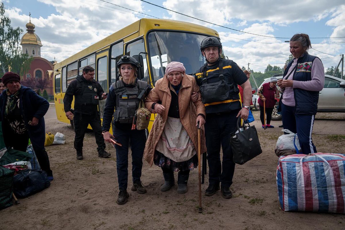 3days ago I wrote a thread, with footage & stories of the evacuations in Vovchansk told by the rescuers and volunteers there documenting it. Today we see this video, how russia now is mass shelling the area, smoke rising from those same homes we just saw people leaving in tears.