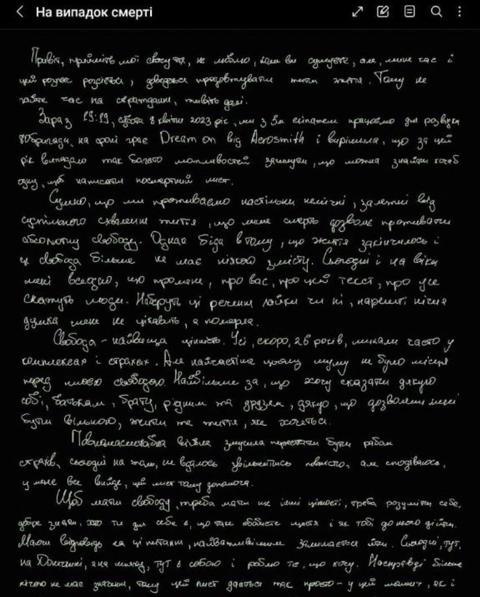 1/21🧵May 29, Iryna Tsybukh a volunteer medic of the "Hospitaliers" was killed in the Kharkiv direction. A year ago, she wrote a goodbye letter in case of her death, now shared by her brother.