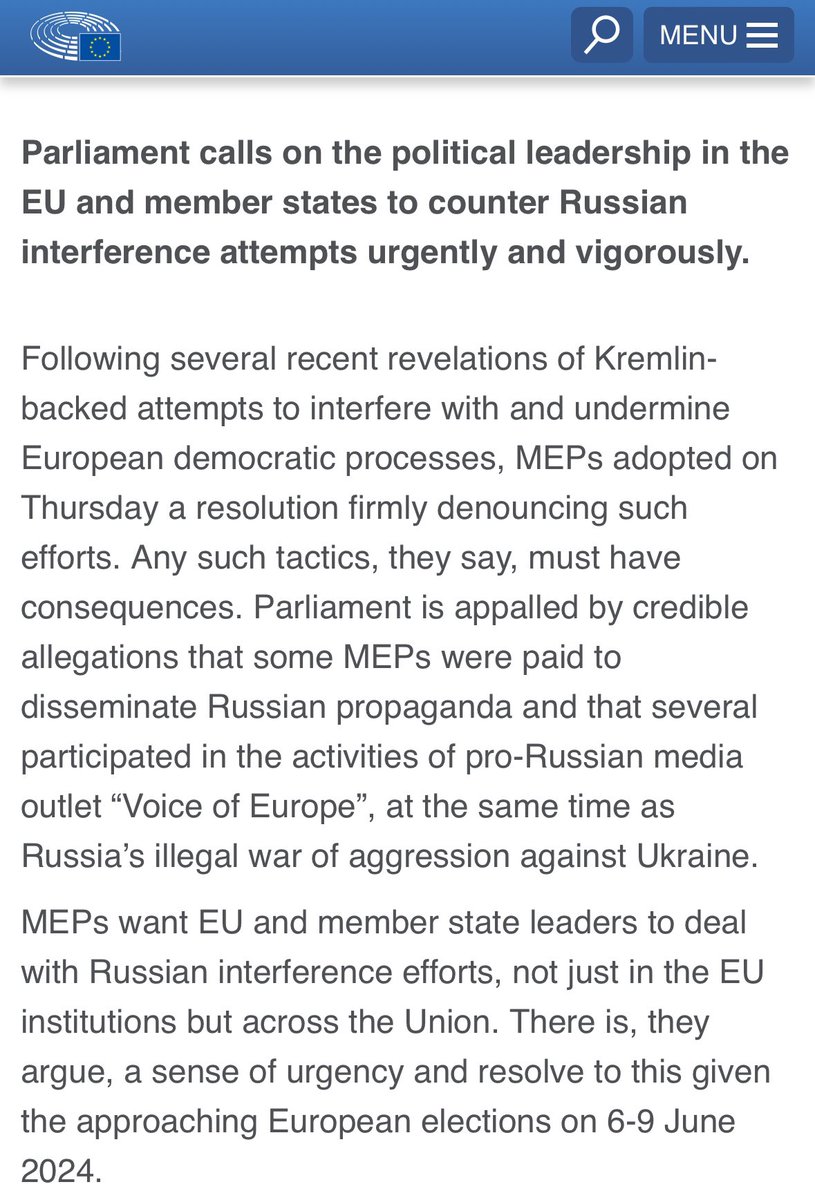 9/20 In 2024 alone serval MEPs have called for immediate action regarding reports of russia providing narratives to far-right parties in order to subvert support for Ukraine, and that some MEPs in Germany, Bulgaria & Slovakia were paid to disseminate russian propaganda.