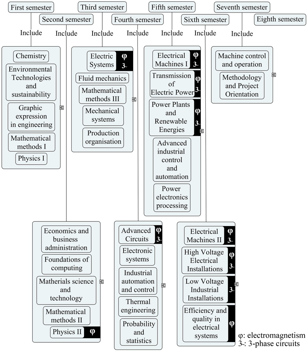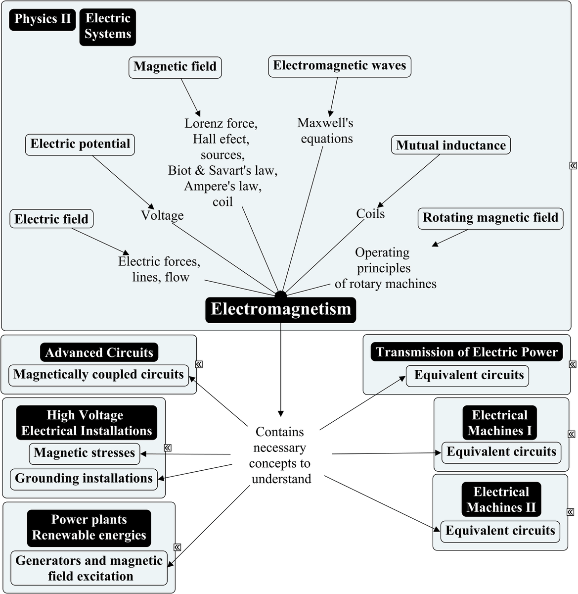🗺️🔬 Usando mapas conceptuales, observamos que las áreas de electromagnetismo y trifásica eran clave para el 32.2% de las asignaturas de la titulación.