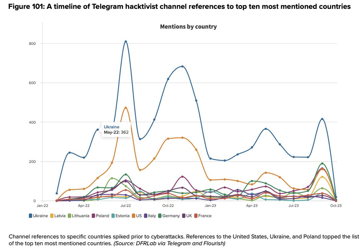 The report also covers how pro-Russian hackers and media outlets utilize Telegram to disseminate content, furthering Russia's digital propaganda efforts. Peaks in hacktivist channel activity often preceded cyberattacks, with frequent mentions of Ukraine, the US, and Poland.
