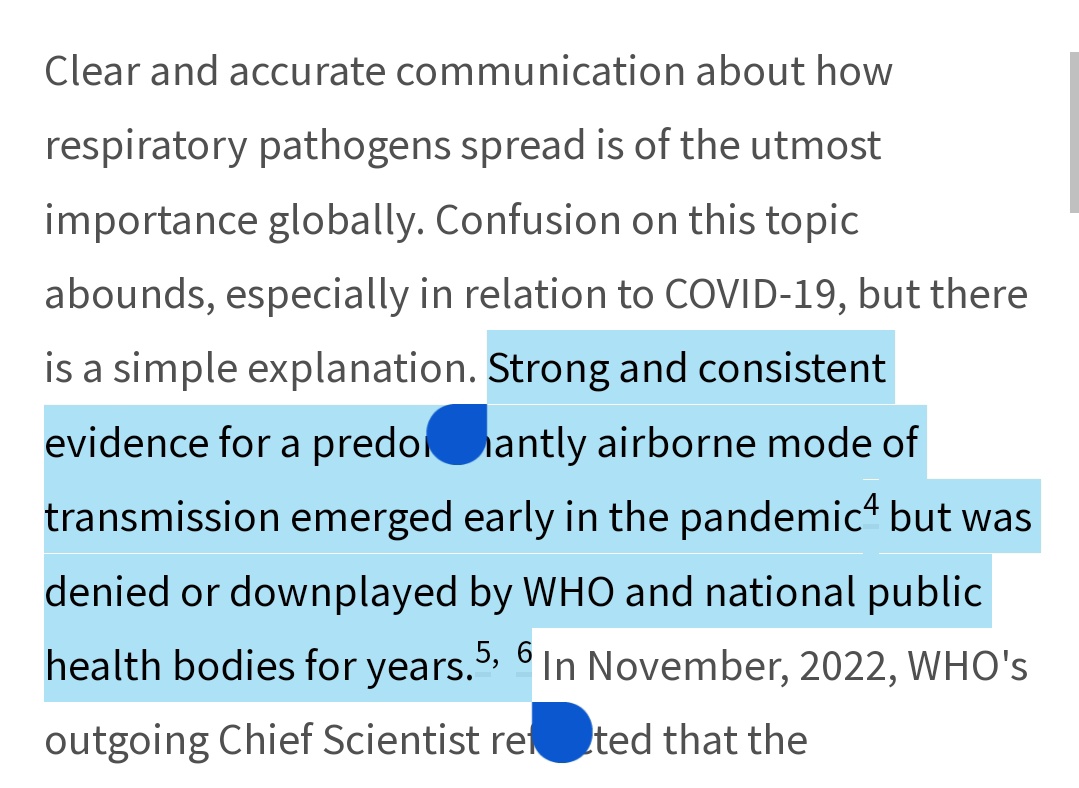 "Strong and consistent evidence for a predominantly #AIRBORNE mode of transmission emerged early in the pandemic but was DENIED or DOWNPLAYED by WHO and national public health bodies for years."