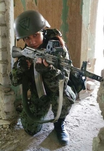 Pictured is Russian Neo Nazi Oksana Nikadimova, a merc of Rusich Battalion, who went on to become a propagandist for Novorossiya News & RIA Novosti. Giving reports on the "Evil Ukrainian Nazis". She was popular in Russia
